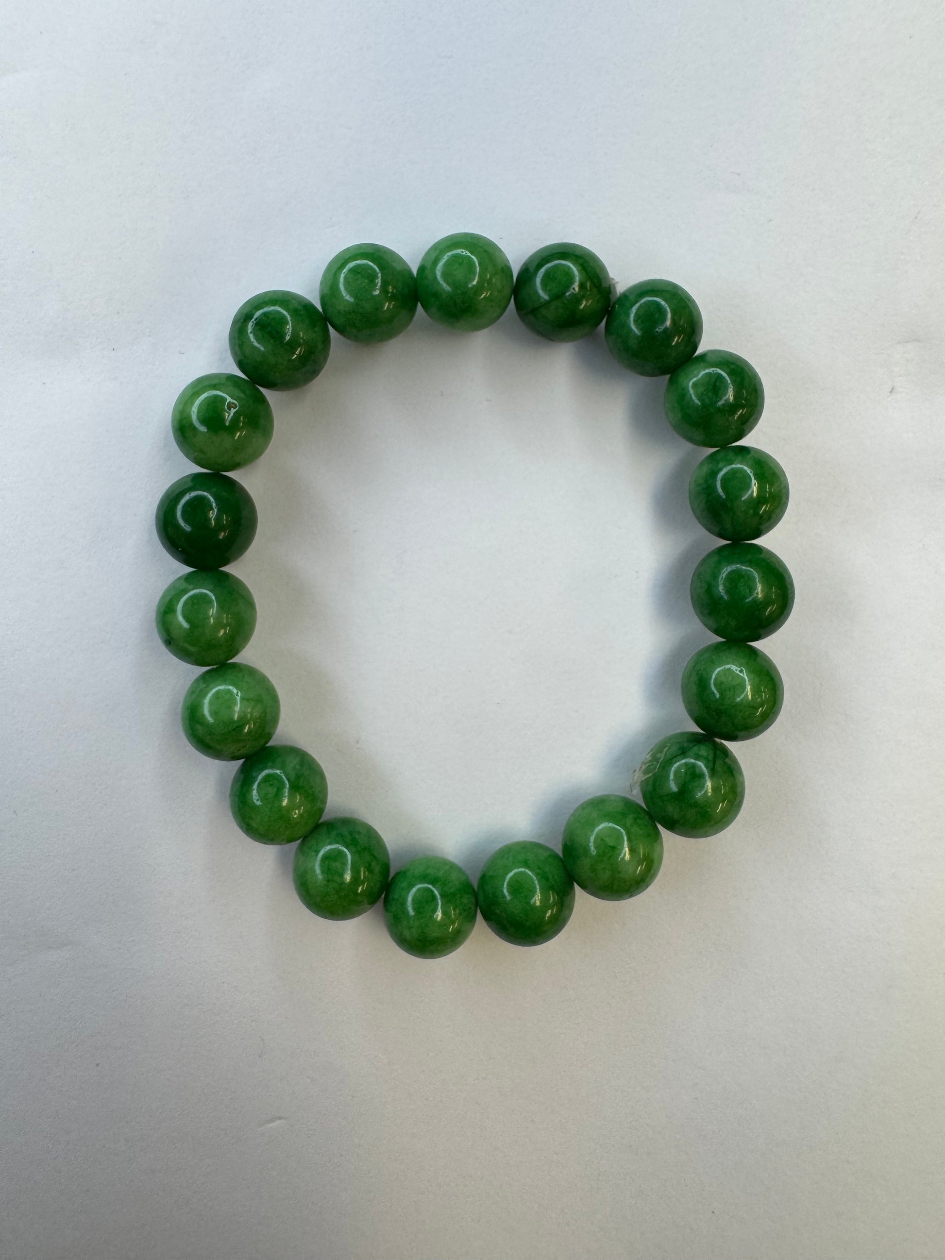 This charming bracelet features 10 mm aventurine beads sourced from Burma, strung together on a durable cord for a comfortable, adjustable fit. Each bead showcases the stone’s natural green hues and subtle shimmer, and the bracelet fits wrists up to 7.1 inches (18 cm), making it a versatile accessory for everyday wear or a meaningful gift.