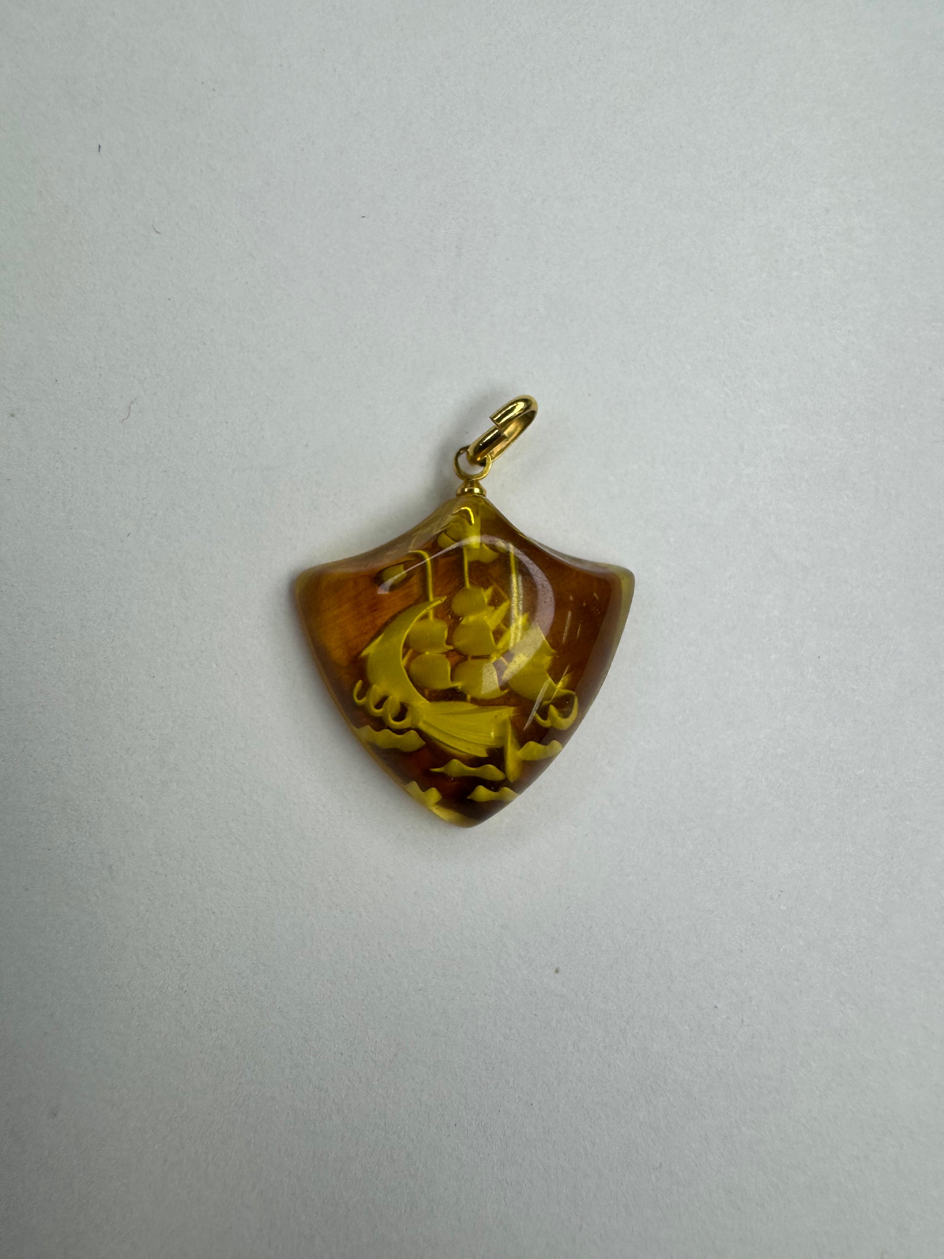This pendant features natural golden-yellow amber with a delicate floral pattern visible within the stone. Measuring 23.6 mm in height, 20.3 mm in width, and 7 mm in depth, it’s finished with a small 0.3-inch clasp for a refined, minimalist touch. Its warm glow and unique internal pattern make it a timeless accessory suitable for everyday wear or special occasions.